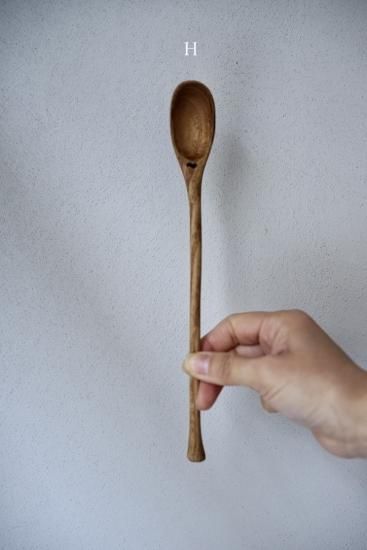木は間伐材や時に海で拾ったものたち、その時々の出会いで様々な使われています。最後はオイルフィニッシュで木の質感と木目、個性が活きた仕上がり。実用品としての使いやすさはそれぞれとして、ナチュラルで体に優しい作りのスプーンたちです。
