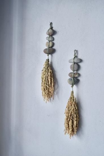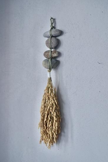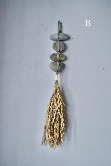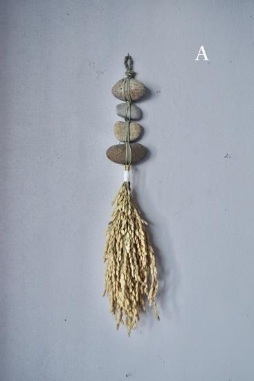 石好きな方のためのお飾り。たわわに実る稲穂をあしらい、実り多き一年でありますようにと思いを込めて作りました。石の大きさや表情により価格が異なります。