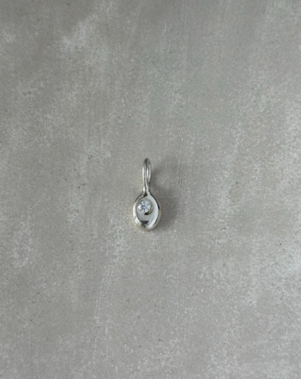 海から立ち上がるきらめく水滴をイメージしたストーンチャーム。