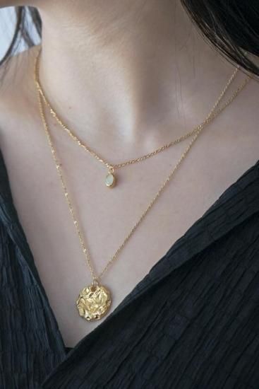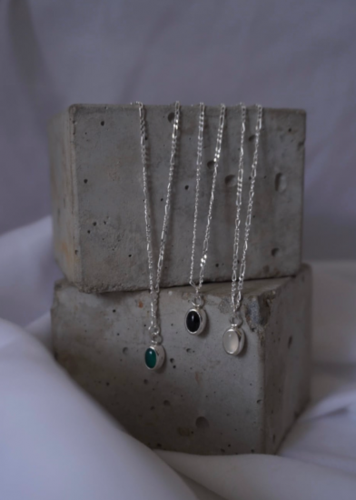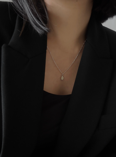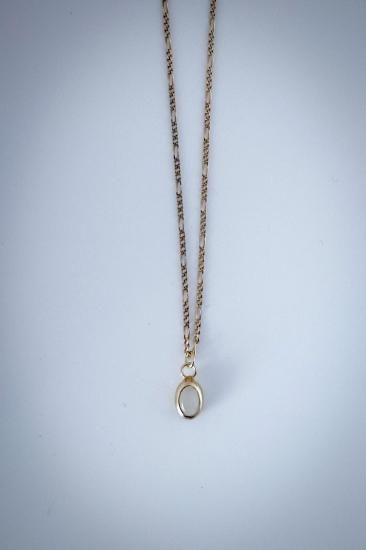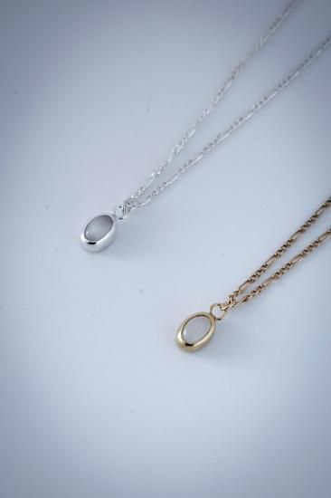 上品なフィガロチェーンとwhite moon stoneの組み合わせで首まわりを美しく見せてくれます。